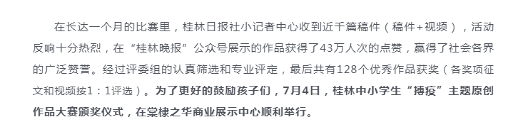 童心觀世界,妙手著文章| 桂林中小學(xué)生“搏疫”主題原創(chuàng)作品大賽頒獎(jiǎng)儀式順利舉行!
