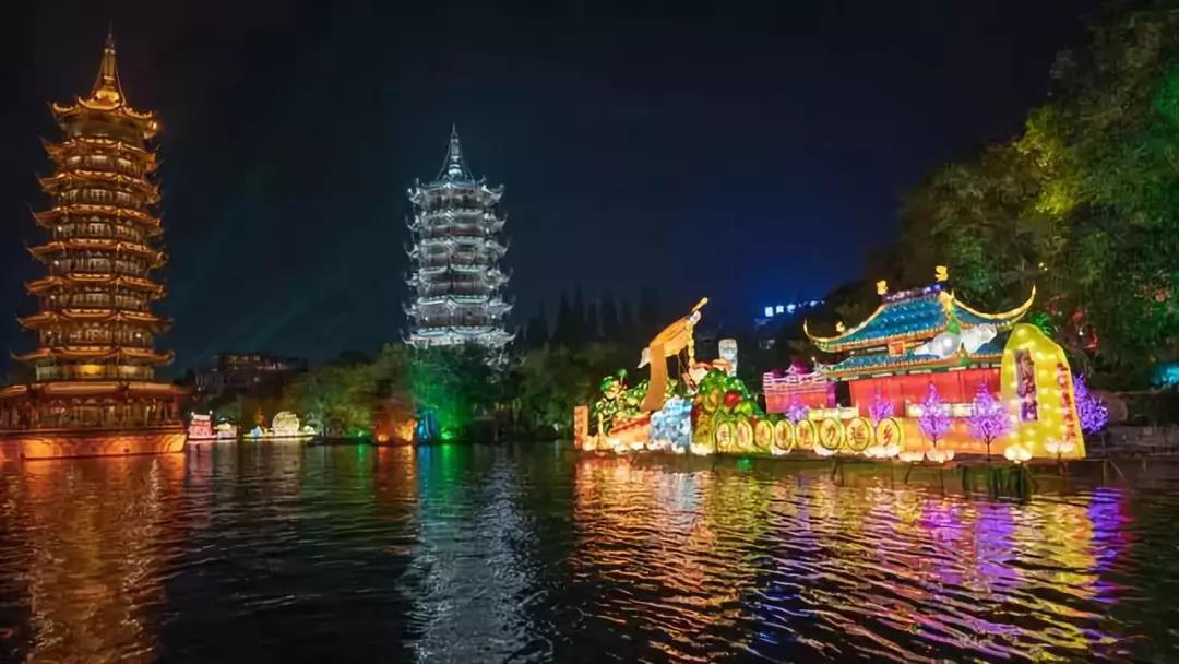 在漓江、杉湖、榕湖、桂湖、木龍湖上同時點亮