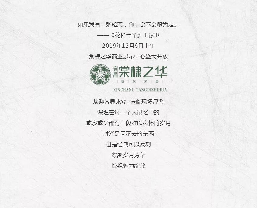 您有一封來自時光的邀請函!棠棣之華商業(yè)展示中心即將盛大開放